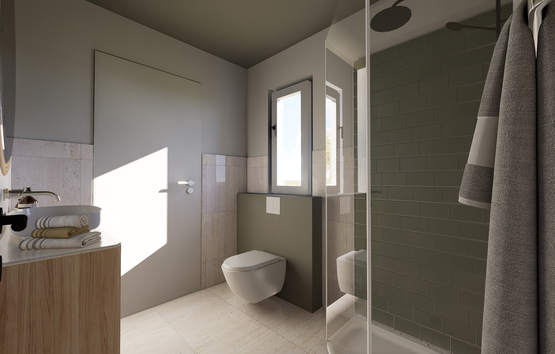 Wnętrze domu zostało zaprojektowane w sposób przemyślany i funkcjonalny. Serce domu stanowi jasny, przestronny salon z aneksem kuchennym oraz dużymi przeszkleniami otwierającymi się na ogród.